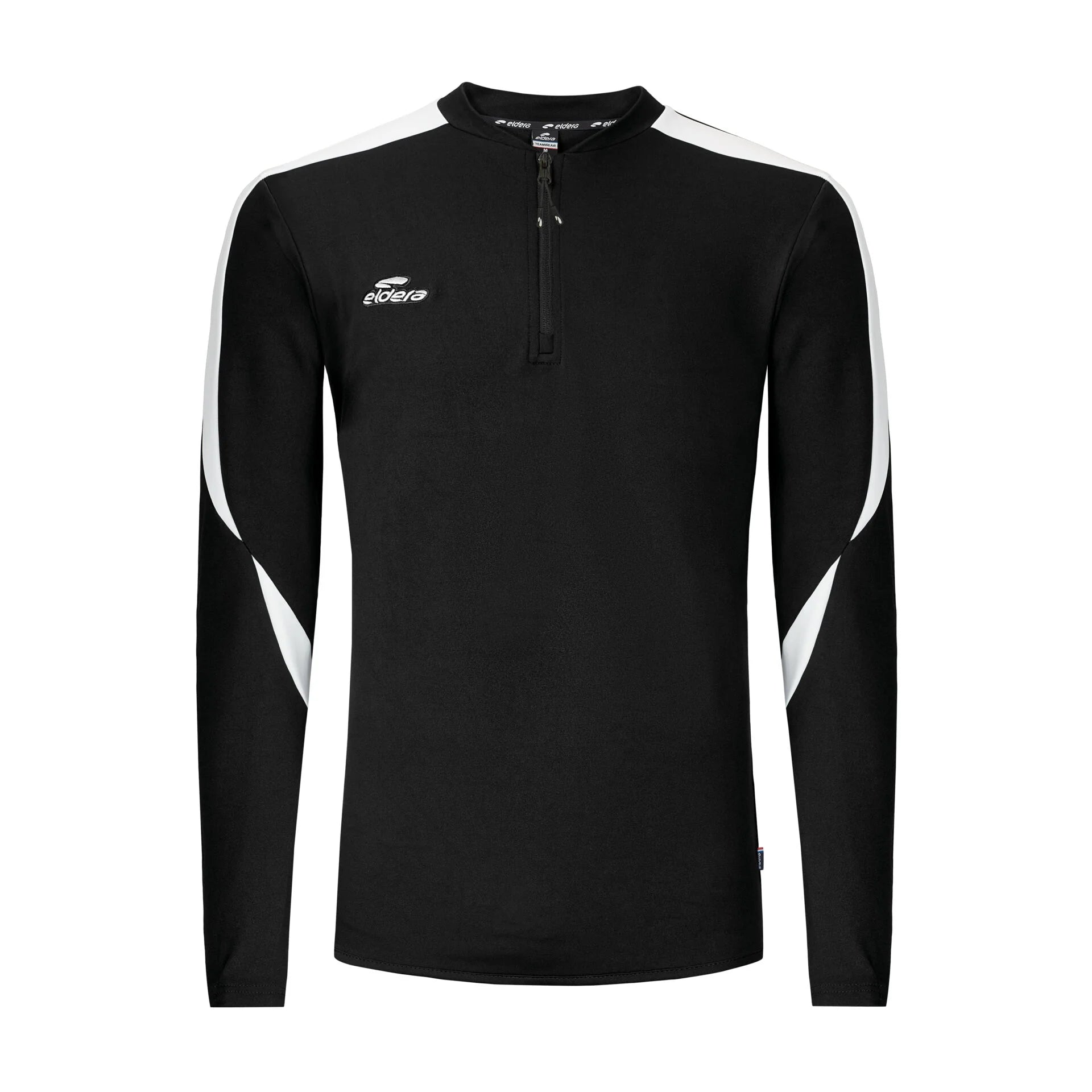Sweat avec empiècements colori contrasté épaules et manches • Détails logos Eldera en silicone sur les épaules • Col “bomber” avec fermeture centrale zippée • Finitions ceinture avec biais élastiqués • Inserts pour les pouces • Logos brodés • Composition 100% polyester.